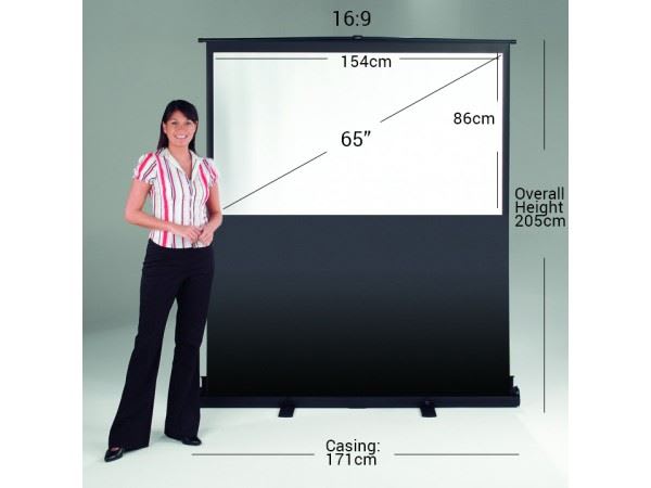 Legs rotate to pull along, handle used to carry around. The best use for this screen is Home/Office - Small Audience. This screen is 154 x 86 cm but what does that mean, there are other measurements to take into consideration. For instance the canister is large than the viewing area which is the part of the material which is white and the projected image is shown on. The wrong size could mean people are struggling to see your presentation or too large will just mean you are carrying around extra weight. Often people find it best to think of the screen as a diagonal size and this screen is 70 inches.