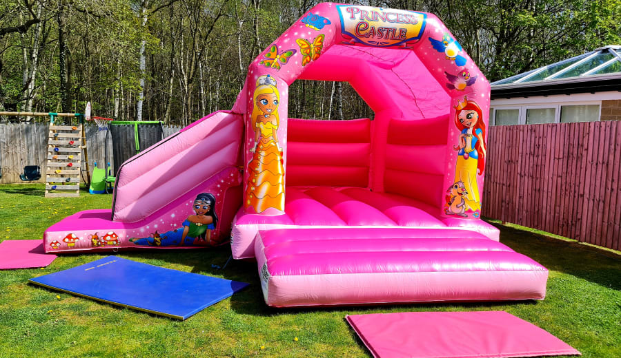 *All sizes are approximate. The Pretty Princess Combo Castle will require an extra 3 feet at the back for a blower and at the front for a mat and 2 feet down each side. A minimum access width of 2 feet will be required. Narrow access, steps, debris, garden furniture, vehicles, blocked drives, common land etc are some of the reasons why we may refuse to deliver the inflatable. If you have any concerns please contact us before booking.