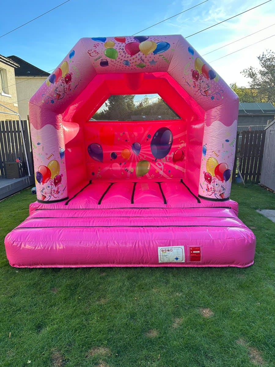 Chris's Castles bouncing castle hire offer the popular 12x12ft Party Pink bouncing castle. A perfect castle to hire for the smaller gatherings or personal family party where garden space is a premium. High on bounce but small enough for those tight garden spaces.