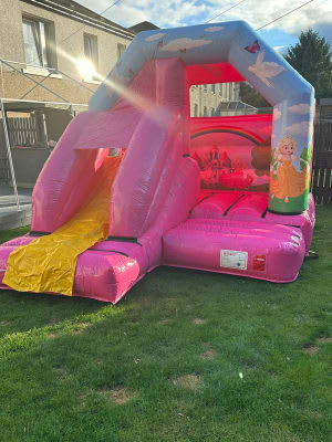 Chris's Castles Bouncy Castle Hire Wakefield offer our stunning Pink Combo Bouncy Castle for children aged 12yrs and under. The pretty pink combo is ideal for your Princesses very own special day. Stunning art and bright pink coloured castle makes this bouncy castle slide stand out with that Wow factor!! Sure to impress everyone. Good sizes bouncing area with an extra long slide addition. We love it and we think your little princesses will too!